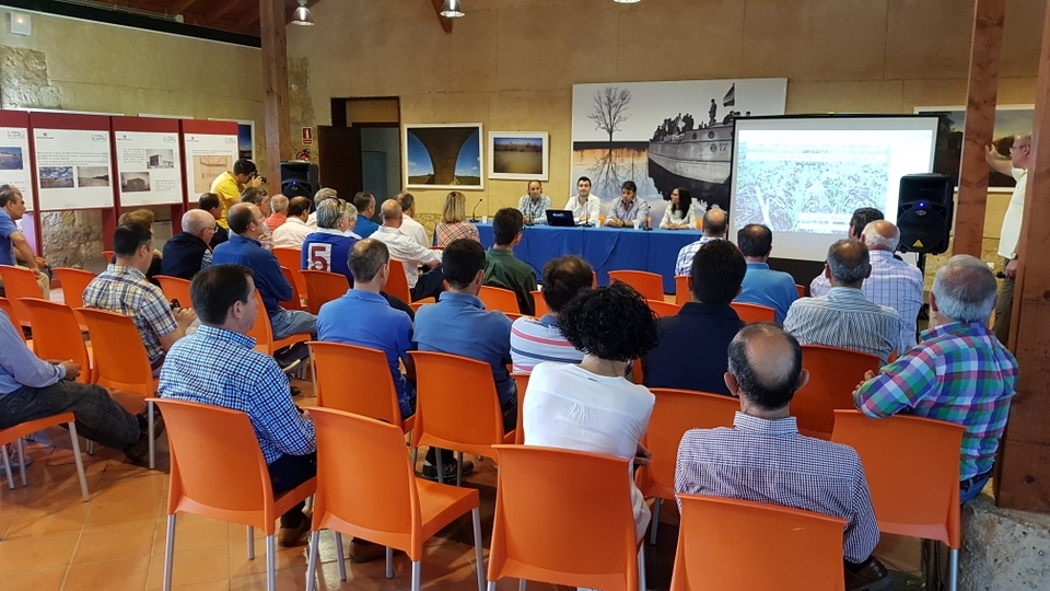 El alcalde de Medina de Rioseco, David Esteban, acompañado por la diputada provincial Noelia García; el presidente de AVAC (Asociación Vallisoletana de Agricultura de Conservación), Juan Ramón Alonso; y el presidente la Juan Agropecuaria de Medina de Rioseco, Víctor Pedro Frontela; inauguraroon el II Encuentro Agrario ’El futuro agropecuario de Tierra de Campos’ en el Centro de Recepción de Viajeros del Canal de Castilla.