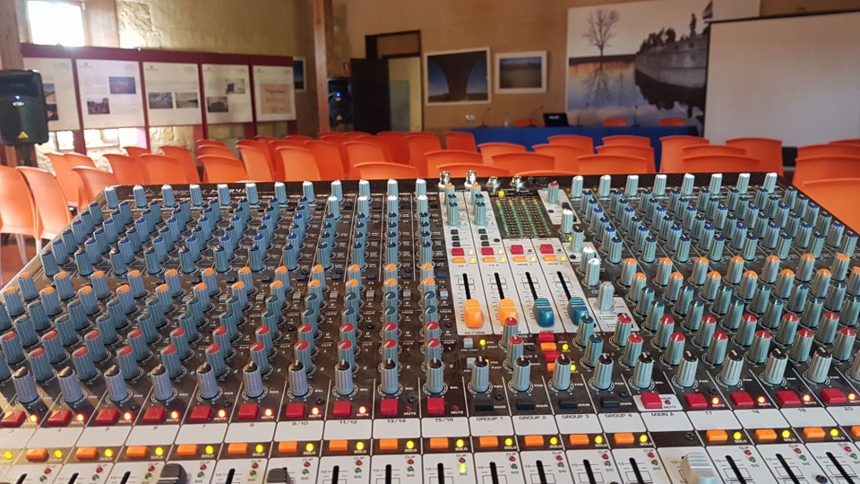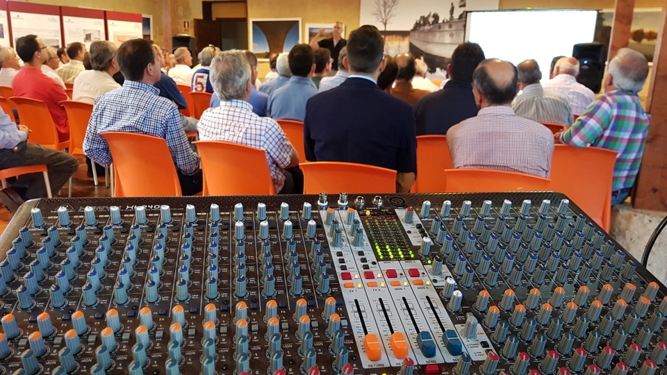 La segunda de las jornadas se centraría en el sector ganadero. Para estas charlas dispusimos de cuatro unidades de micrófonos de cuello de cisne de la marca AKG y de diademas y microfonía inalámbrica Sennheisser de las series XSW. Asimismo estrenamos nuestra nueva pantalla de proyección con faldón incorporado de 220 cm.