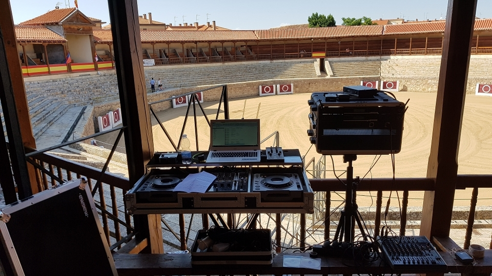Para esta ocasión se usaron seis sistemas Behringer 815 Neo con 7200 watios de sonido repartidos a lo largo de media plaza de toros y microfonía Sennheisser de la series XSW con antenas omnidireccionales A1031 para dar la mejor cobertura inalámbrica posible. Asimismo mesa de mezclas Pioneer DJM 750K, platos Pioneer CDJ 800, Tarjeta de sonido audio A8 con Tracktor para lanzar todas las músicas y efectos en directo.