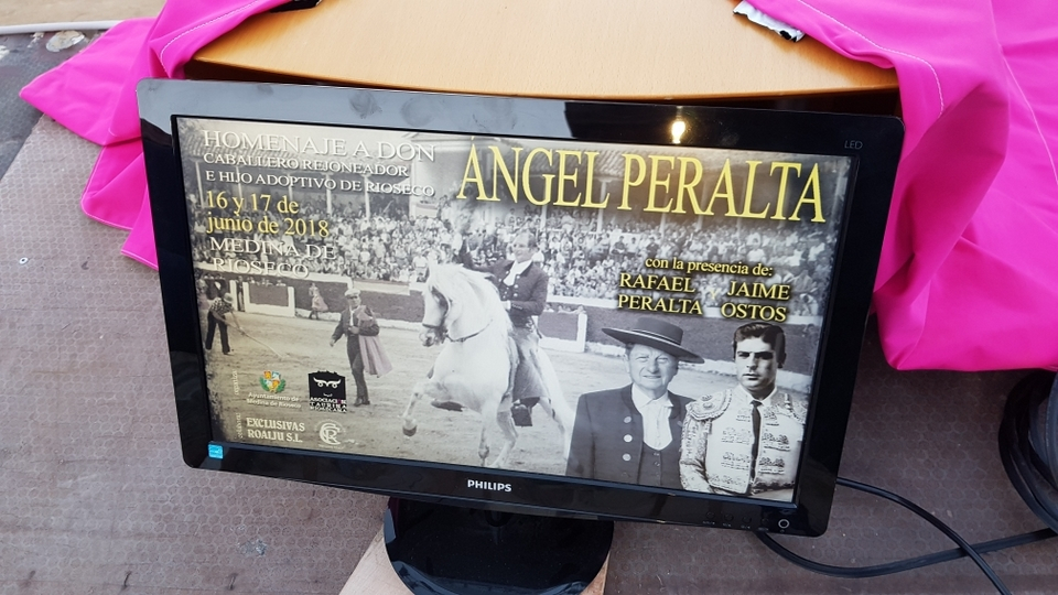 Memoria y gratitud. Estas palabras son el epitafio que recuerda la labor del caballero rejoneador don Ángel Peralta en Medina de Rioseco. Una placa que, desde el sábado, ya luce en el coqueto y centenario Coso del Carmen y que fue descubierta por el hermano del rejoneador, Rafael peralta, y por la viuda del homenajeado, Mirén Rizo. Fue dentro de un completo y emotivo programa de actos elaborado por el Consistorio de Medina de Rioseco y la Asociación Taurina Riosecana, que han querido rendir homenaje al Hijo Adoptivo de la Ciudad, Ángel Peralta, tan solo dos meses después de su fallecimiento.